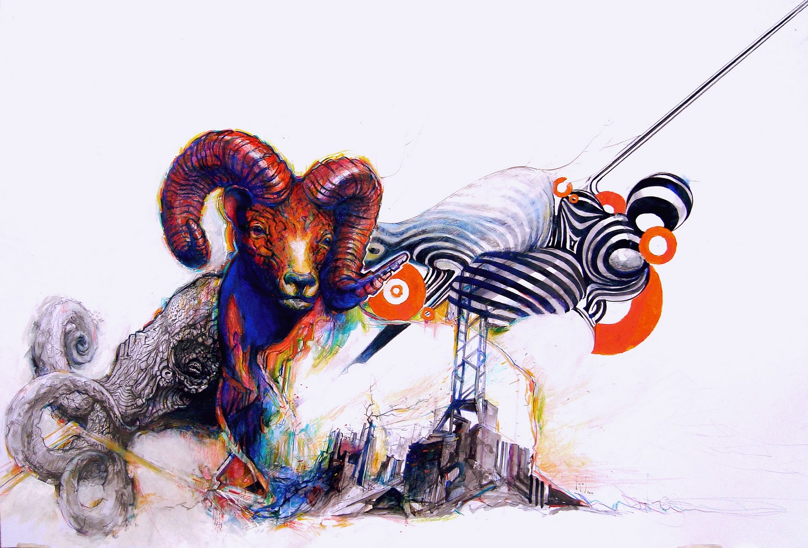 tec mixta sobre papel (lapices de colores, acrilico y acuarelas )